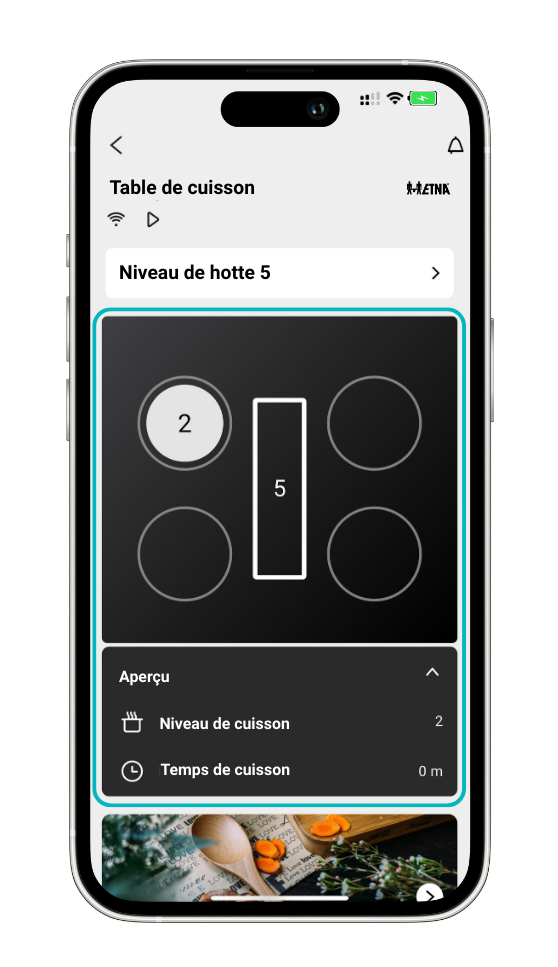 Pour des raisons de sécurité, les plaques à induction ne peuvent pas être commandées à distance. Cependant, via l'application ConnectLife™, vous pouvez facilement surveiller votre plaque de cuisson et profiter de fonctions pratiques, telles que :